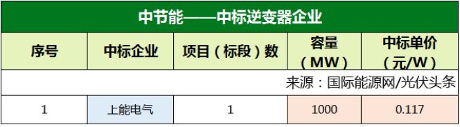 上能電氣最低價中標項目為國家電投逆變器集采1500V 集中式2標段,該項目招標容量1000MW,上能電氣中標單價為0.117元/W。