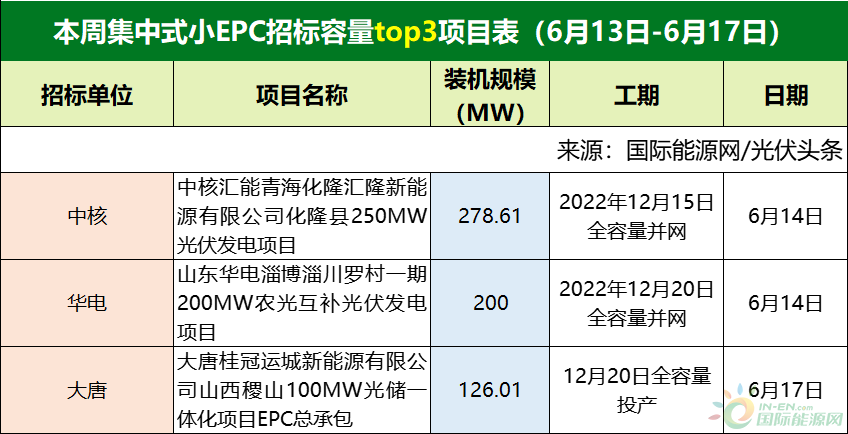 此外,本周分布式、集中式小EPC招標容量TOP3項目,具體情況如下:
