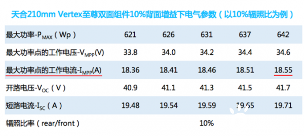 而210mm硅片600Wp組件的Impp值已增大至17.34A。若考慮到雙面組件的背面發電增益, Impp值還會略有增加。