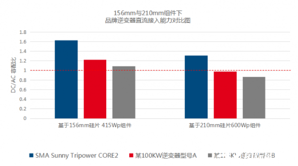 表1 不同逆變器對應大尺寸硅片組件接入能力對比圖