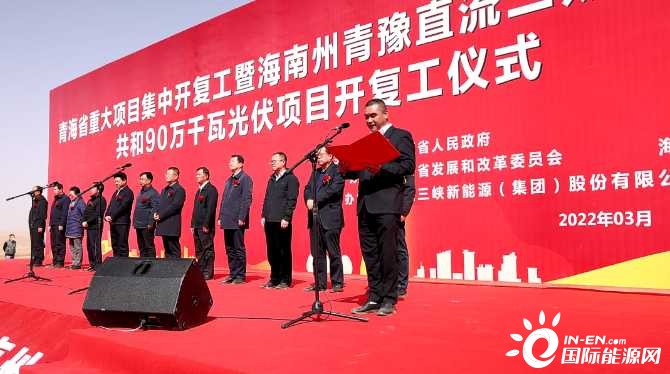 近日,在青海省2022年度重大項目集中開復(fù)工儀式上,三峽集團所屬三峽能源海南州青豫直流二期外送通道共和90萬千瓦光伏項目正式開復(fù)工。青海省政府副省長劉濤出席開復(fù)工儀式并宣布項目開復(fù)工,海南州州委書記呂剛致辭,州委副書記、州長尕瑪朋措主持開復(fù)工儀式。