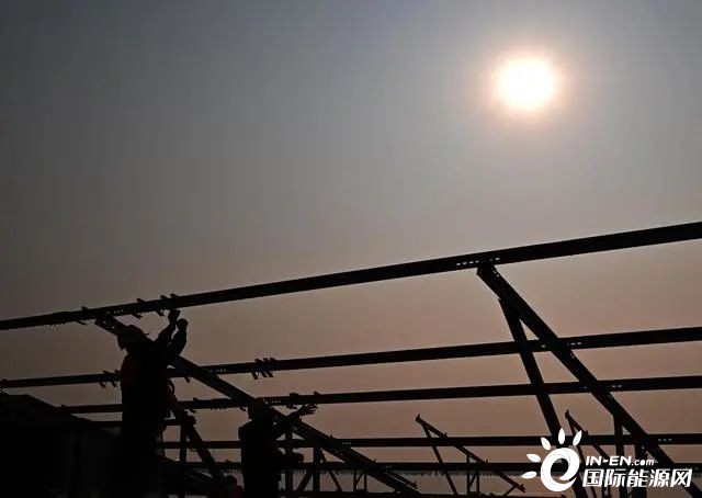 1月5日,建設(shè)者在華電海晶光伏項目B標(biāo)段施工。新華社記者 李然 攝