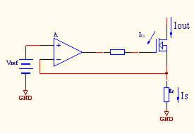 其中類型1為基本電路,工作時,輸入電壓Vref與輸出電流成比例的檢測電壓Vs(Vs=Rs×Iout)相等,如圖5所示,