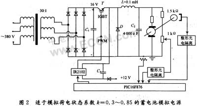 上面討論的是荷電狀態系數k=0.3~0.85所對應的情況,在這一區間內,可認為蓄電池的內阻Ri是常數。對于k<0.3的情況,隨k值的下降,內阻Ri會急劇上升。這一狀態也可由模擬電源近似模擬:使開關管T1的PWM脈寬隨k值一起下降,一方面造成電壓的下降,同時由于也使整個線路的開關損耗增大,這相當于增加了蓄電池的內阻。不過這樣得到的Ri值與蓄電池的實際內阻可能有相當的差距,因此k<0.3的情況不適宜使用。