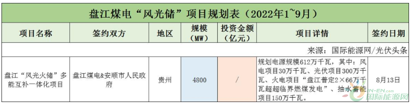 截至2022年9月30日,盤江煤電共簽約(規劃)1個風光儲項目,明確規模共計4.8GW。