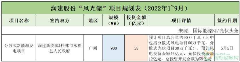 截至2022年9月30日,潤建股份共簽約(規劃)1個風光儲項目,項目規模為900MW,投資金額為58億元。