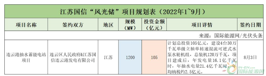截至2022年9月30日,江蘇國信共簽約(規劃)1個風光儲項目,項目規模1.2GW,投資金額105億元。